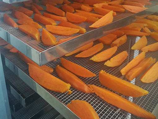 紅薯烘干要準(zhǔn)確掌握好紅薯的干度,可用口嚼時(shí)軟而綿,這樣硬度為適宜。如果烘干過干,吃時(shí)嚼不爛,影響其品質(zhì),但烘干不到位,水分多,容易生霉腐爛。根據(jù)使用我司小型紅薯干烘干機(jī)的客戶反饋的情況,紅薯干的烘干溫度不宜超過55℃,要分階段烘干,中間要讓紅薯干回軟。