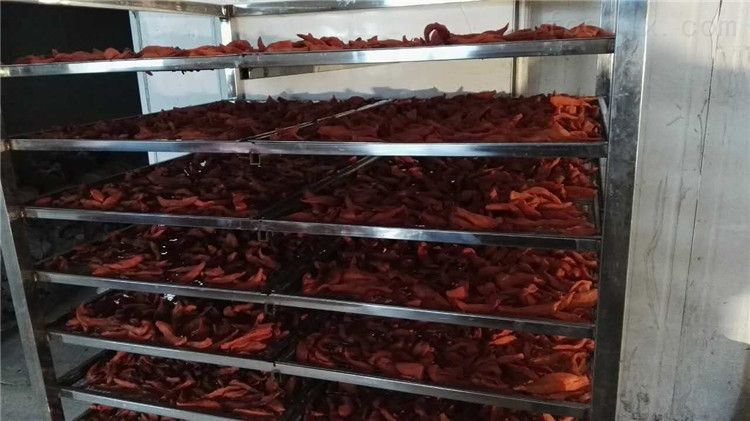 5、關(guān)閉電源,一小時(shí)后取出物料。包裝入袋取出物料后,需待紅薯片冷卻,才能包裝入袋。總體而言,一批次烘干時(shí)間大約為8小時(shí),高溫度不超過70℃。